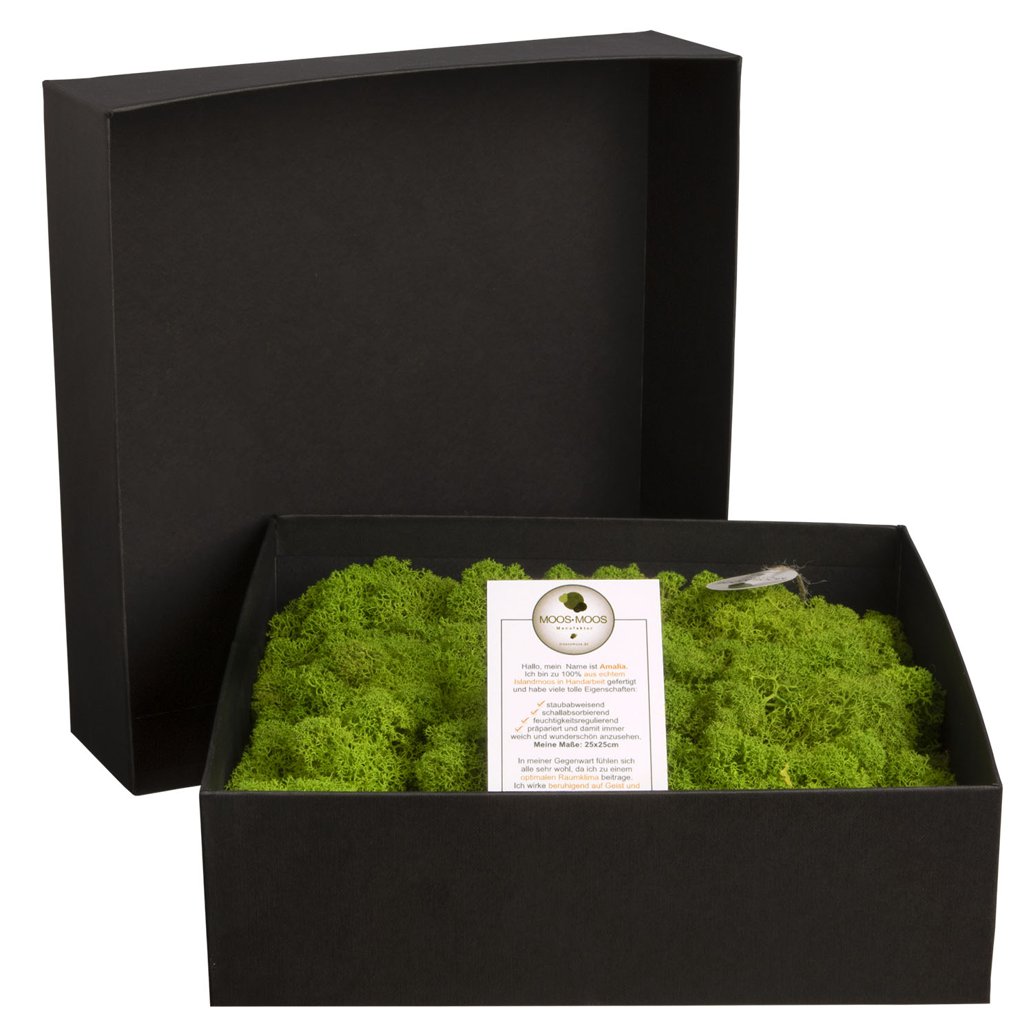 PflegeUnter üblichen Raumbedingungen benötigt das Moosbild keine Pflege oder Wasser - Das Moosbild darf nicht gegossen werden. Ebenso ist das Moosbild nicht für den Außenbereich geeignet. Bitte vermeiden Sie dauerhafte, intensive Sonnen- oder Lichteinstrahlung.