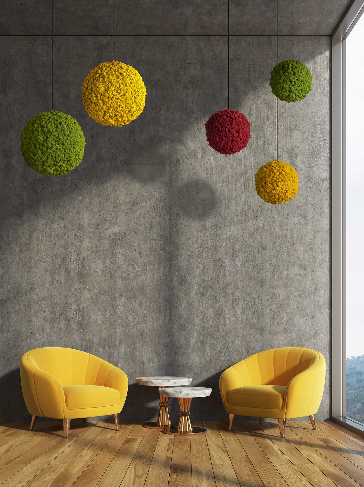 Unsere Moos Ball / Kugeln sind perfekt geeignet für Großräume wie Hotellobbys, Konferenzräume und Eingangshallen, aber auch für die häusliche Wohnzimmergestaltung der besonderen Art. Durch ihre strahlenden, kosmetischen, lichtechten Farben wirken sie freundlich und einladend. Alle Bälle / Kugeln bestehen aus sorgfältig ausgewähltem Islandmoos.