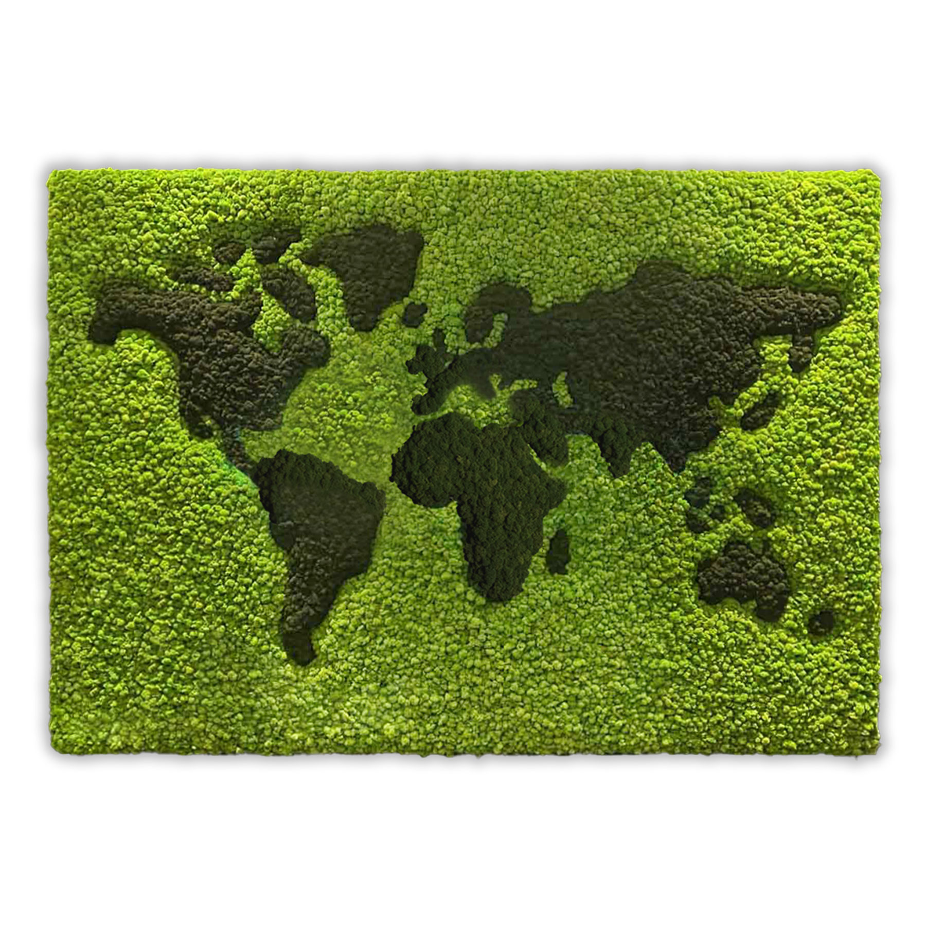 Mit unserer zweifarbigen Weltkarte aus Islandmoos erhalten Sie ein nachhaltiges, pflegefreies und handgefertigtes Kunstwerk, das Ihre Reiselust widerspiegelt und für ein exklusives Ambiente sorgt.