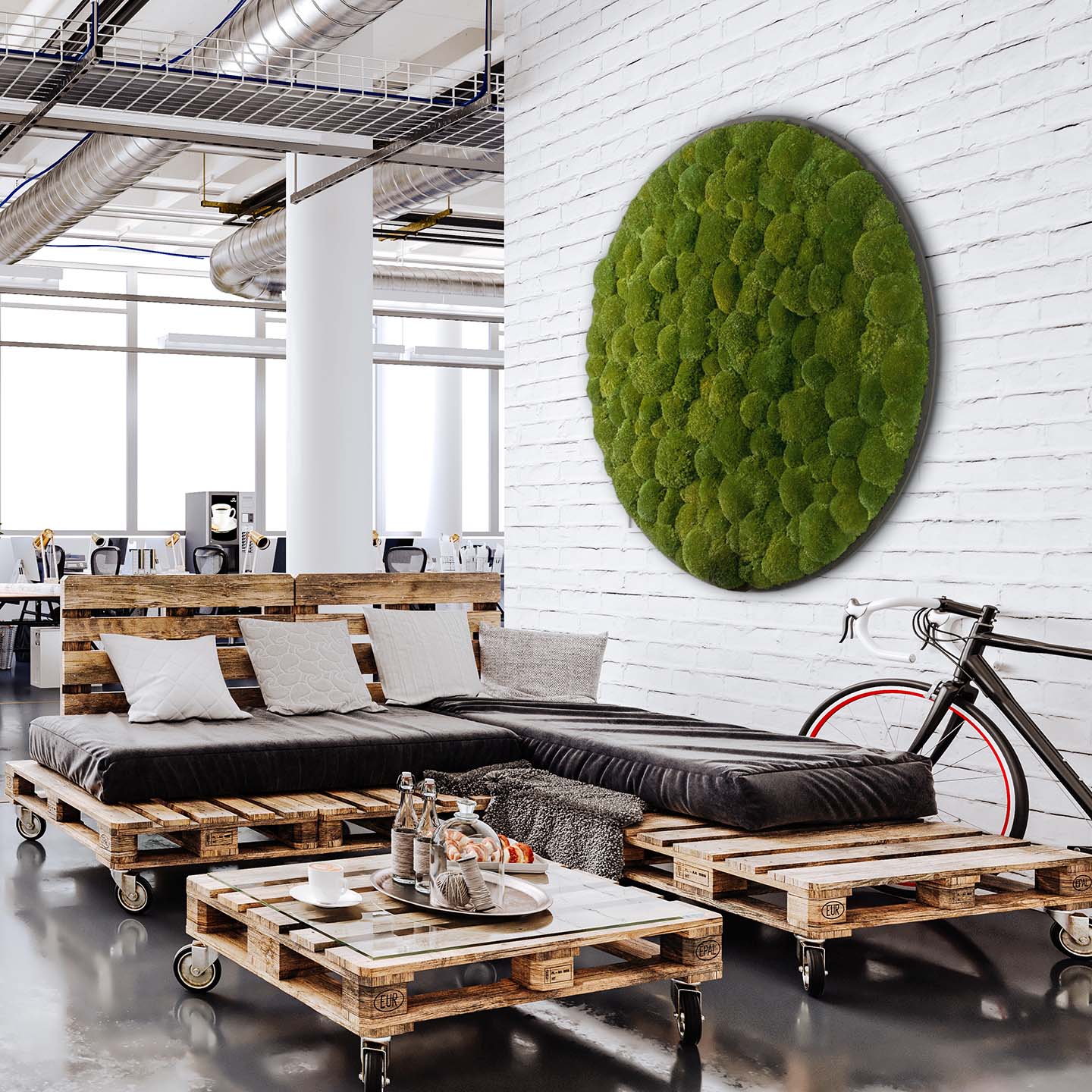 Ob im Büro, im Konferenzraum, Wartezimmer oder im heimischen Wohnzimmer: Unsere Moosbilder verleihen einen einzigartigen Naturcharakter in allen Wohn- und Arbeitsräumen.
