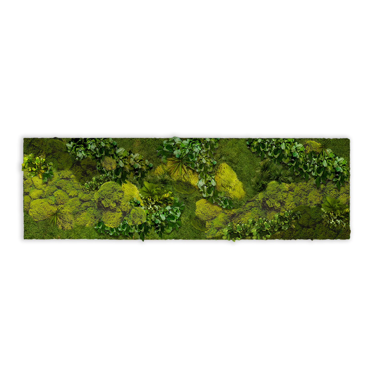 Unser Moosbild aus Dschungelmoos enthält durch die Konservierung antistatische Eigenschaften und nimmt kaum Staub auf.