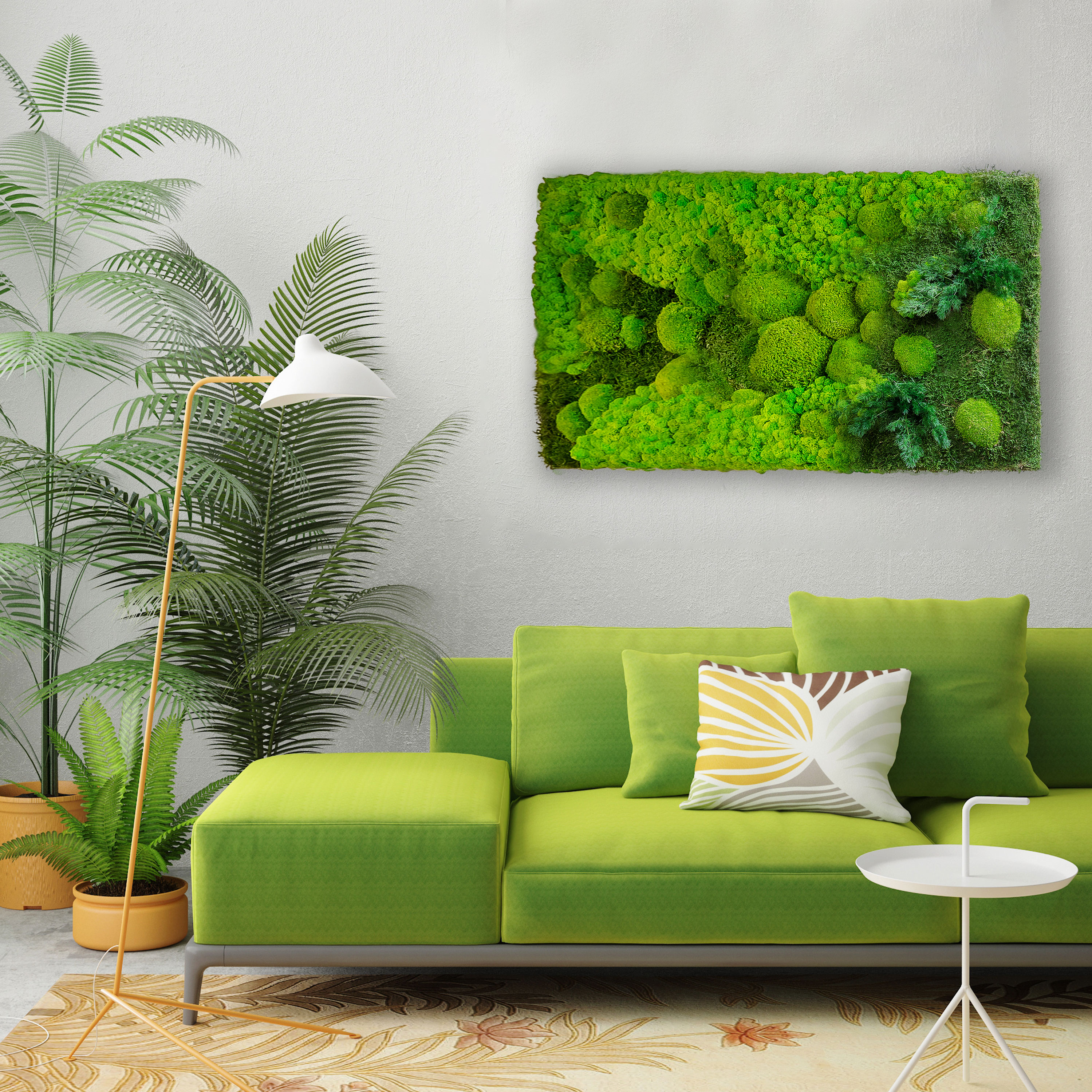 Stress minimieren, Wohlbefinden steigern und zurück zur inneren Balance finden. Mit unseren gigantischen Moosbild erzeugen Sie in Ihrem Zuhause einen einzigartigen Naturcharakter und profitieren so positiv von seiner natürlichen Ausstrahlung. Egal ob im heimischen Wohnzimmer, als Designelement in Ihrer Praxis oder als stylisches Highlight in Ihrem Büro: Das zeitlose Design passt zu jedem Einrichtungsstil. Unser Moosbild aus Pflanzenmoos verhilft außerdem zu einem angenehmen Raumklima, verbessert die Raumakustik und bringt die Ruhe der Natur in Ihre Vier Wände.