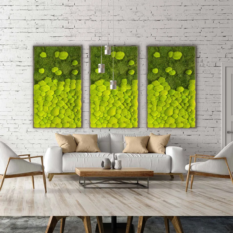 Stress minimieren, Wohlbefinden steigern und zurück zur inneren Balance finden. Mit unseren gigantischen Moosbild erzeugen Sie in Ihrem Zuhause einen einzigartigen Naturcharakter und profitieren so positiv von seiner natürlichen Ausstrahlung. Egal ob im heimischen Wohnzimmer, als Designelement in Ihrer Praxis oder als stylisches Highlight in Ihrem Büro: Das zeitlose Design passt zu jedem Einrichtungsstil. Unser Moosbild aus Pflanzenmoos verhilft außerdem zu einem angenehmen Raumklima, verbessert die Raumakustik und bringt die Ruhe der Natur in Ihre Vier Wände.