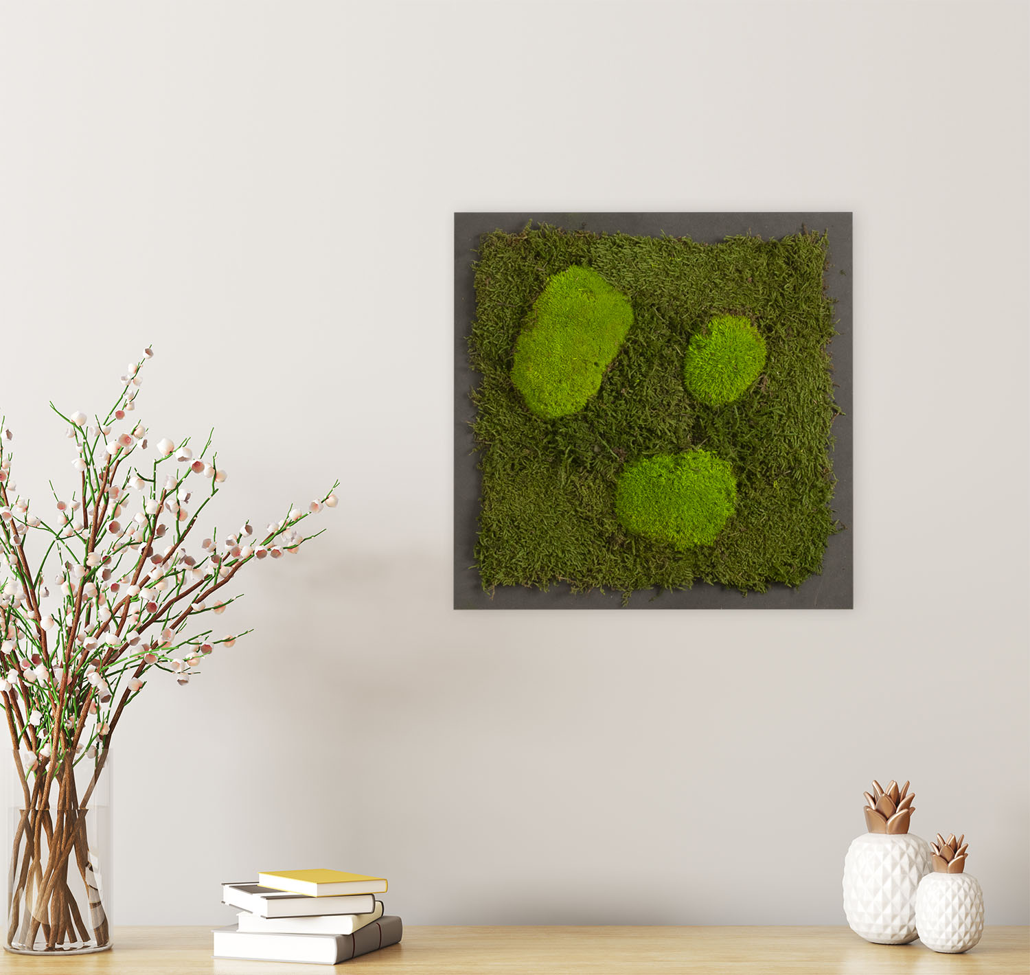 Ob im Büro, im Konferenzraum, Wartezimmer oder im heimischen Wohnzimmer: Unsere Moosbilder verleihen einen einzigartigen Naturcharakter in allen Wohn- und Arbeitsräumen.
