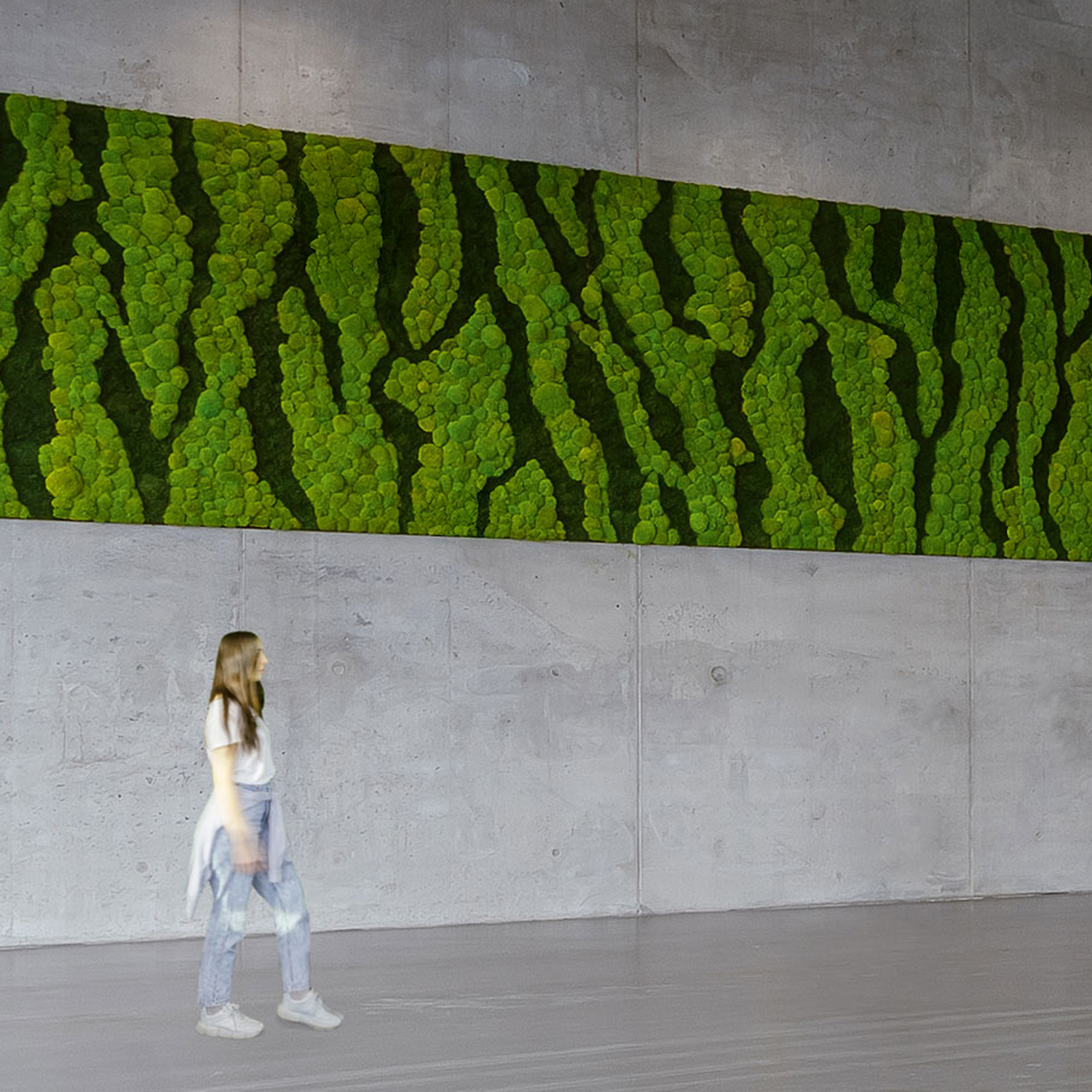 Das durchdachte Zusammenspiel der verschiedenen Moosarten erzeugt ein natürliches Camouflage-Design, das jedem Raum eine besondere Note verleiht. Ideal für moderne Wohnkonzepte, Büros oder als Statement-Piece in Empfangsbereichen – die Mooswand ist ein Blickfang, der Funktionalität und Ästhetik vereint.