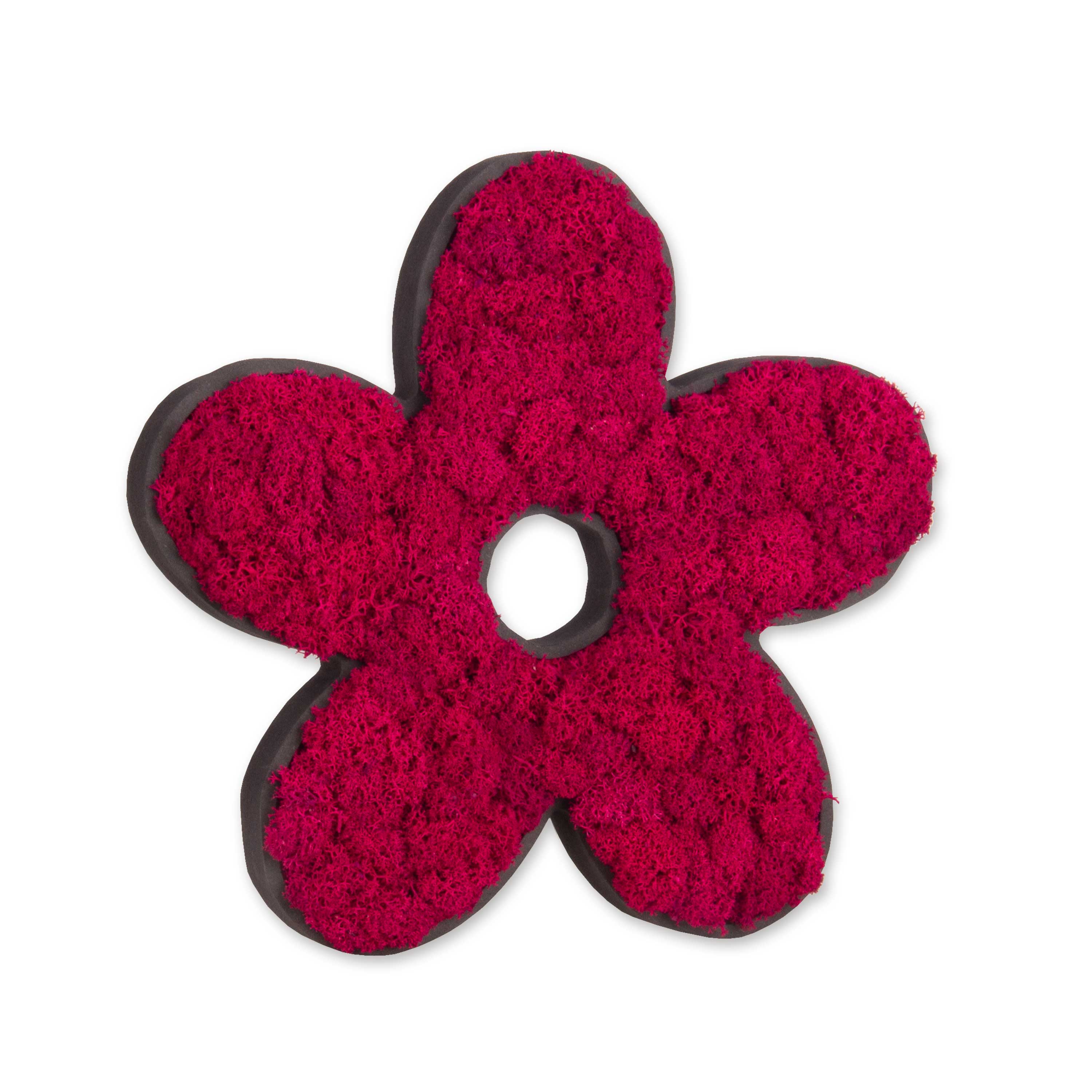 Die fröhliche Blumenform zieht sofort alle Blicke auf sich und sorgt für eine spielerische und einladende Raumgestaltung. Dank der natürlichen Eigenschaften des Islandmooses wirkt das Piktogramm schallabsorbierend und trägt zu einer angenehmen Raumakustik bei – ideal für lebhafte Räume, in denen sich Kinder wohlfühlen sollen.